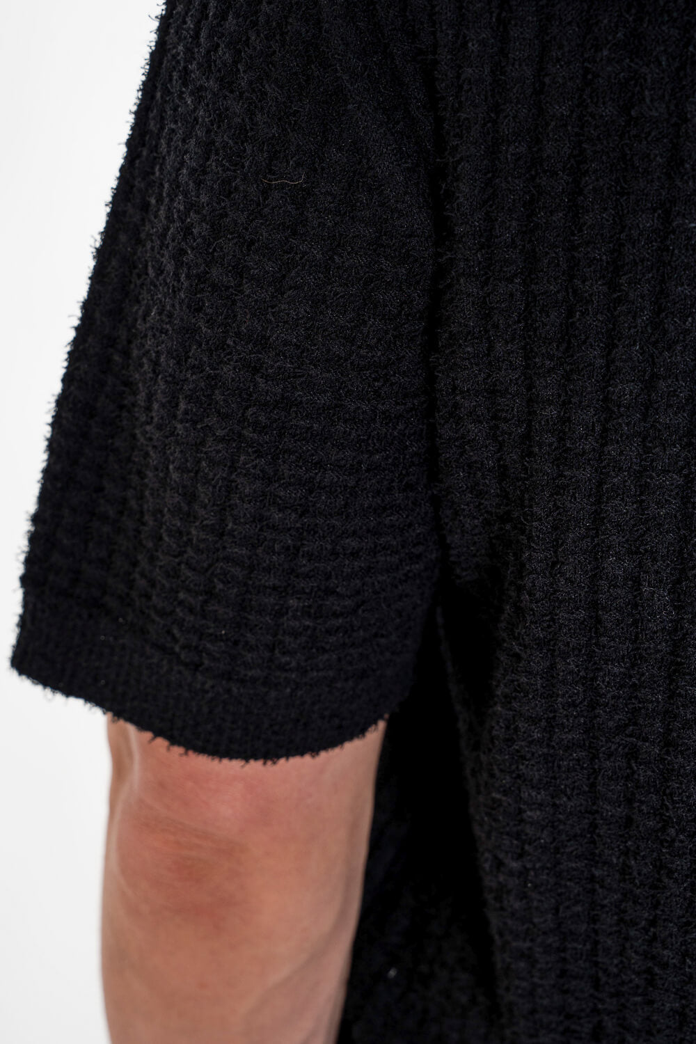 Distinct waffle-knit / grid-texture fabric for depth and character