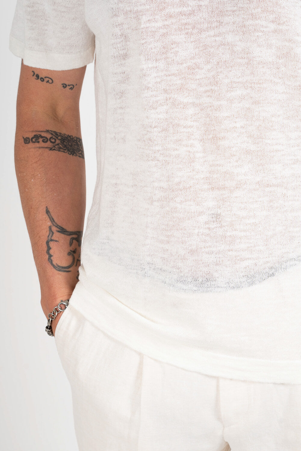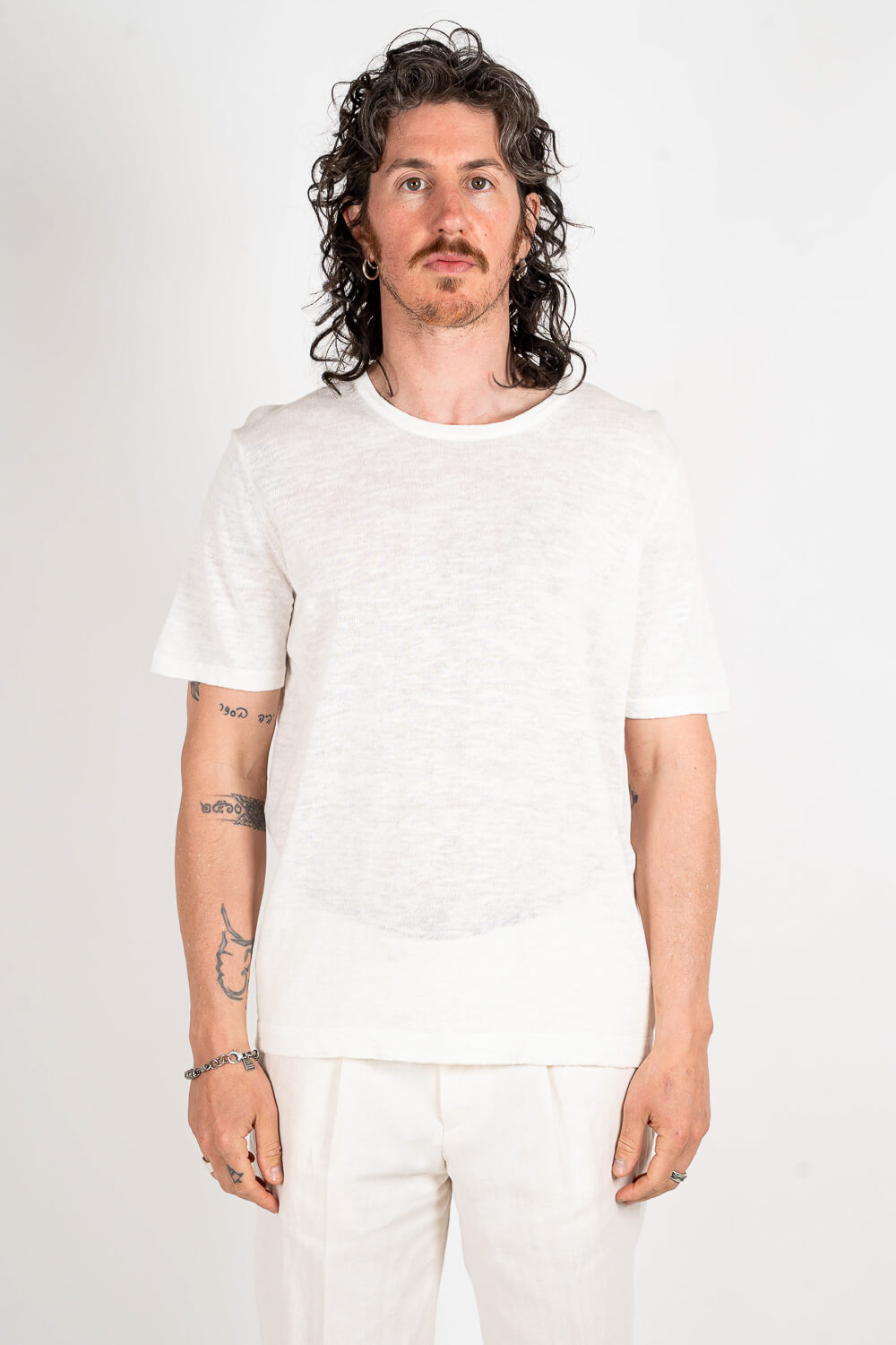 The Sand Copenhagen Crewneck Linen T-Shirt White features: