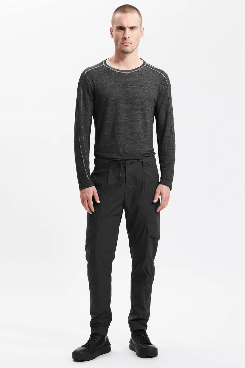 The Transit Lightweight Cotton Cargo Trouser Black features: