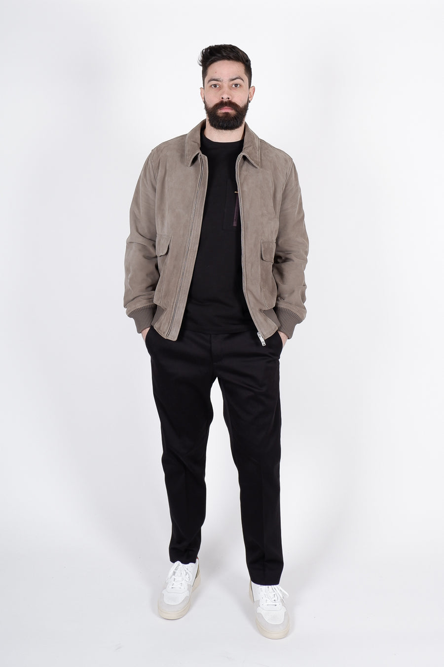 The PT Torino Italian Suede Bomber Jacket Grey features: