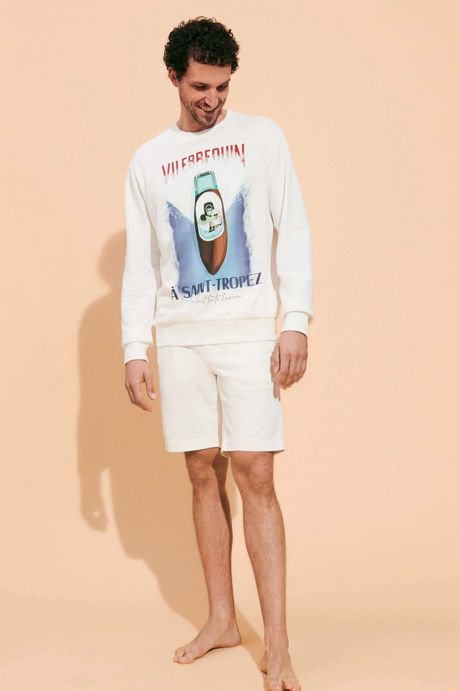 The Vilebrequin Cotton Crewneck Sweatshirt Inboard Boat in White features: