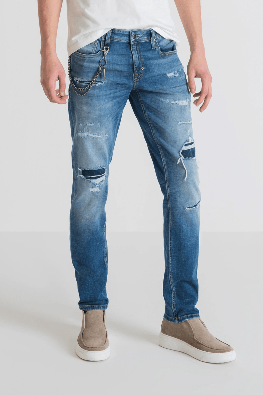The Antony Morato Iggy Tapered Fit Jeans in Blue features: