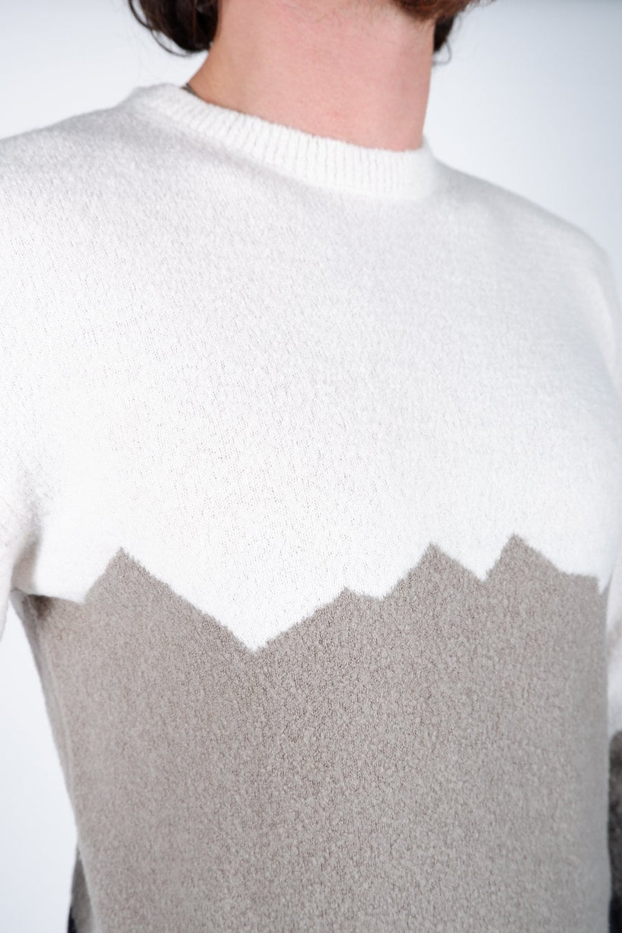 Boiled Wool Peak Design Knitted Jumper White/Black