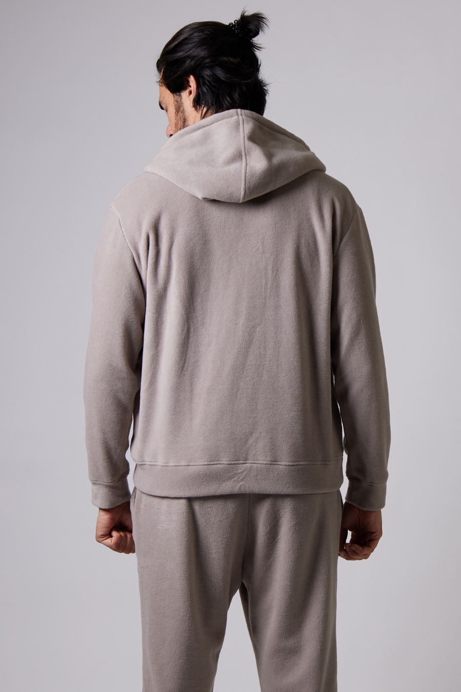 The Daniele Fiesoli Soft Fleece Zip-Up Hoodie Taupe features: